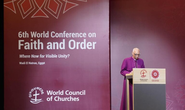 Today, Archbishop Dr. Samy Fawzy, Archbishop of the Province of Alexandria of the Anglican Episcopal Church, took part in the Sixth Global Conference of the Faith and Order Commission of the World Council of Churches, held under the theme “Where Are We Now in Relation to Visible Unity?”. The conference brings together church leaders and representatives from around the world and is being hosted at the Logos Conference Center at the Monastery of St. Bishoy in Wadi El-Natrun, with the attendance of Rev. Yeshua Bakhit, Secretary-General of the Council of Churches of Egypt; Eng. Shady Mounir, Dean of the Episcopal Theological College; and Mr. Salim Wasif, Dialogue Advisor at the Christian–Islamic Center for Understanding and Partnership.