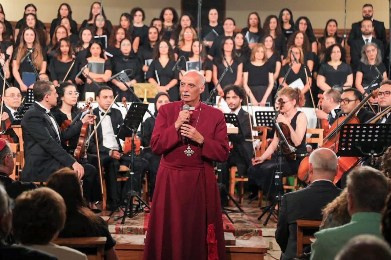 رحّب رئيس الأساقفة الدكتور سامي فوزي بالحاضرين، مؤكدًا تقدير الكنيسة العميق لقيمة الفن والثقافة، موضحًا أن الموسيقى تحمل رسالة محبة وأمل ورجاء، فحتى وسط الحروب والانقسامات يظل الفن دعوة للسلام، ونحن اليوم جئنا لنستمتع بهذا الفن.